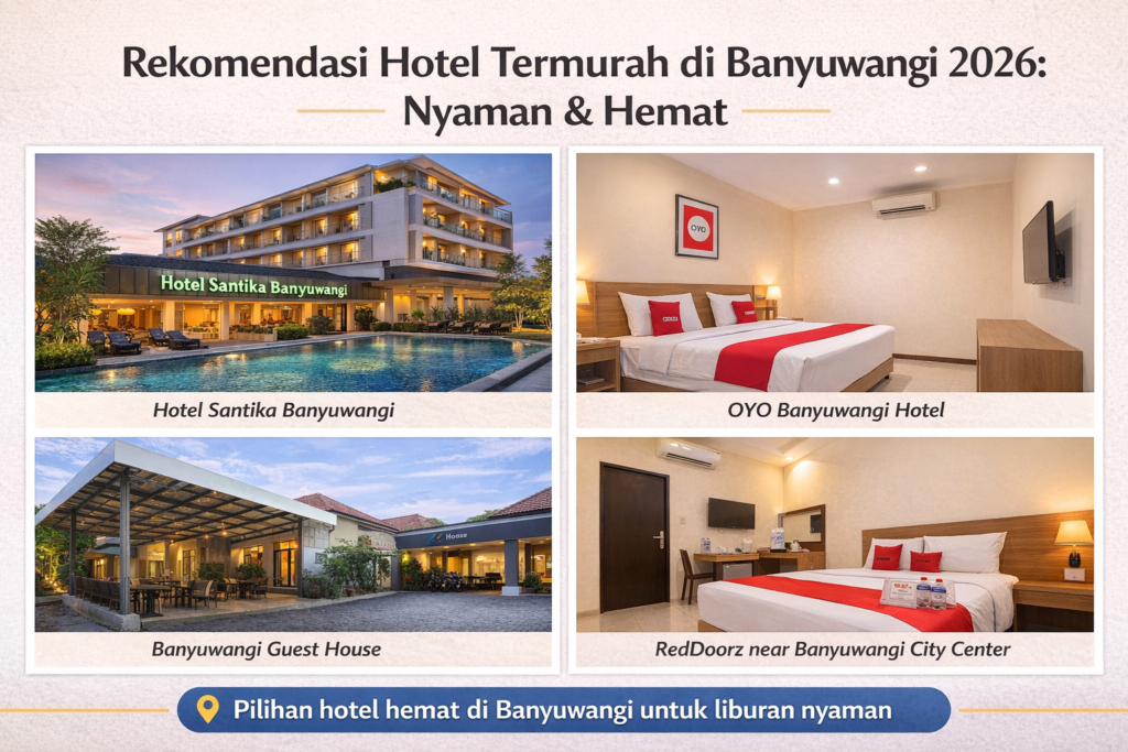 Banyuwangi, kota di ujung timur Pulau Jawa, semakin ramai dikunjungi wisatawan karena keindahan alamnya yang memukau, mulai dari Kawah Ijen, Pantai Pulau Merah, hingga wisata alam Taman Nasional Baluran. Untuk menikmati liburan tanpa khawatir biaya penginapan, berikut rekomendasi hotel termurah di Banyuwangi yang tetap nyaman dan bersih.